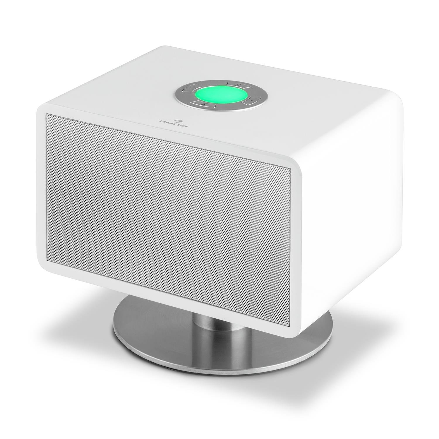 In seiner Formgebung ähnelt der Living Qube von Auna der größeren Ausführung, dem High Qube. Mit Abmessungen von 23 x 20,5 x 17,5 Zentimetern und einem Gewicht von 2,73 Kilogramm hat der Living Qube die perfekte Größe, um in jedem Regal oder auf jedem Tisch eine Platz zu finden. Das Lautsprecherdesign zeigt sich elegant und edel. Der rechteckige Lautsprecher steht auf einem niedrigen Metallfuß und wirkt dadurch leicht und luftig. Den Living Qube gibt es in den Farben Schwarz und Weiß, sodass er sich optimal in jedes Wohnambiente integrieren lässt. Die Oberfläche des Lautsprechers ist nicht foliert, sondern lackiert. Dadurch macht der kleine Qube einen hochwertigen und edlen Eindruck.